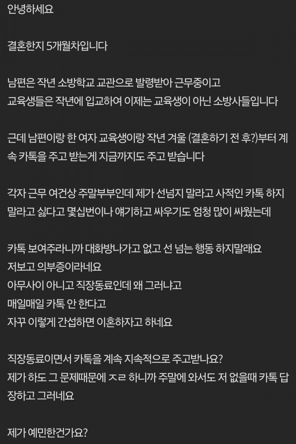 여자 동료와 카톡 하지 말라니까 이혼 하자는 남편