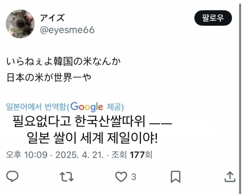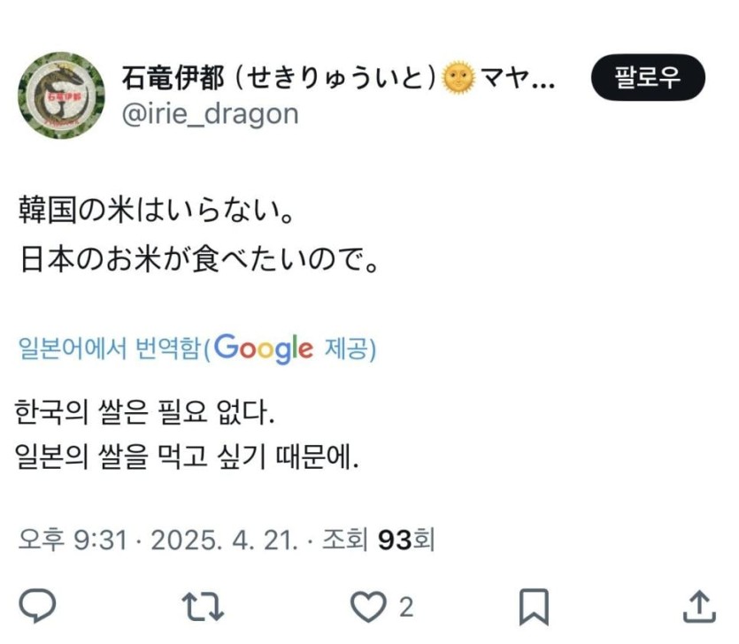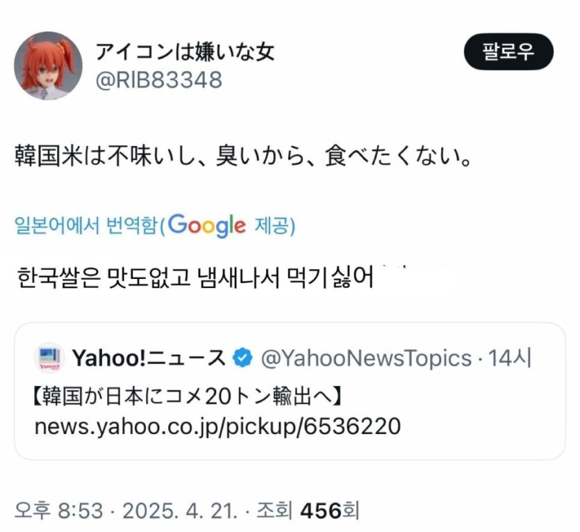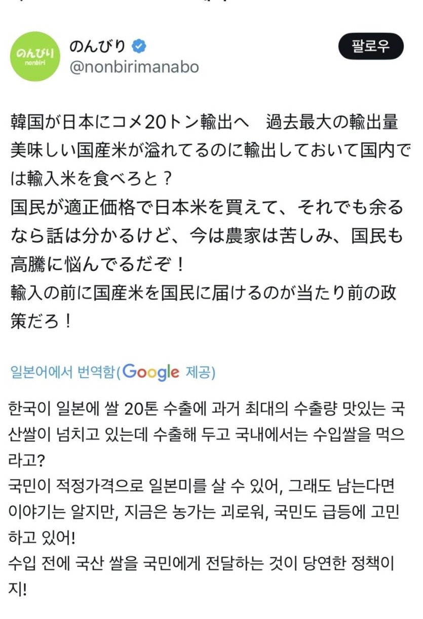 한국에서 수입한 쌀 안먹는다고 난리난 일본인들