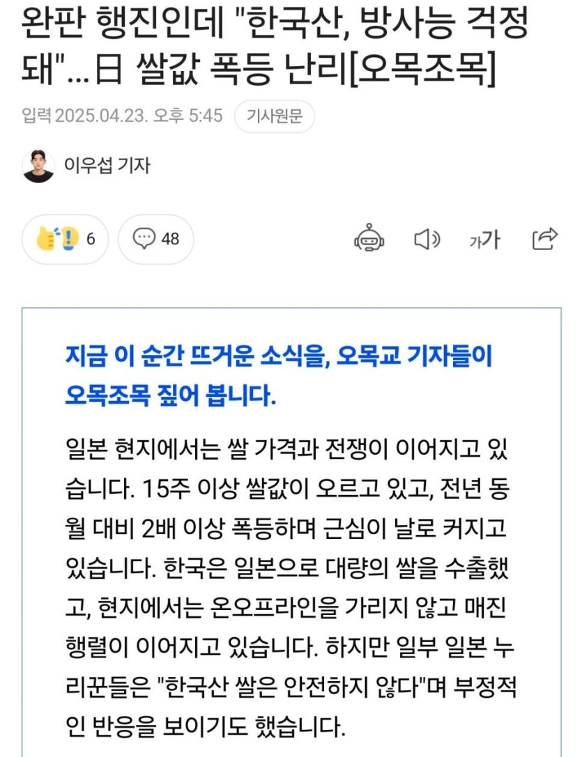 한국에서 수입한 쌀 안먹는다고 난리난 일본인들