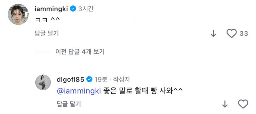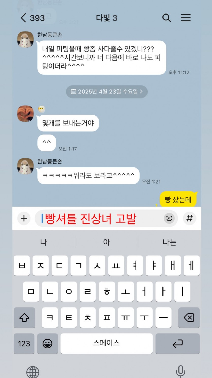 방금 인스타스토리로 진상녀 고발한 강민경.. rh1 0 151 0 2025.04.24 00:15 얼마 전 한 빵집을 추천하는 게시물을 올린 강민경(광고 x) 이후 이해리가 올린 인스타에 강민경이 댓글을 달았는데 이해리는 냅다 좋은 말로 할 때 빵 사오라고 함 그리고 방금 올라온 스토리 ㅋㅋㅋㅋㅋㅋㅋㅋㅋㅋㅋㅋㅋㅋㅋㅋㅋㅋㅋㅋ 집착하는 자가 쟁취한다 방금 인스타스토리로 진상녀 고발한 강민경.. 0
