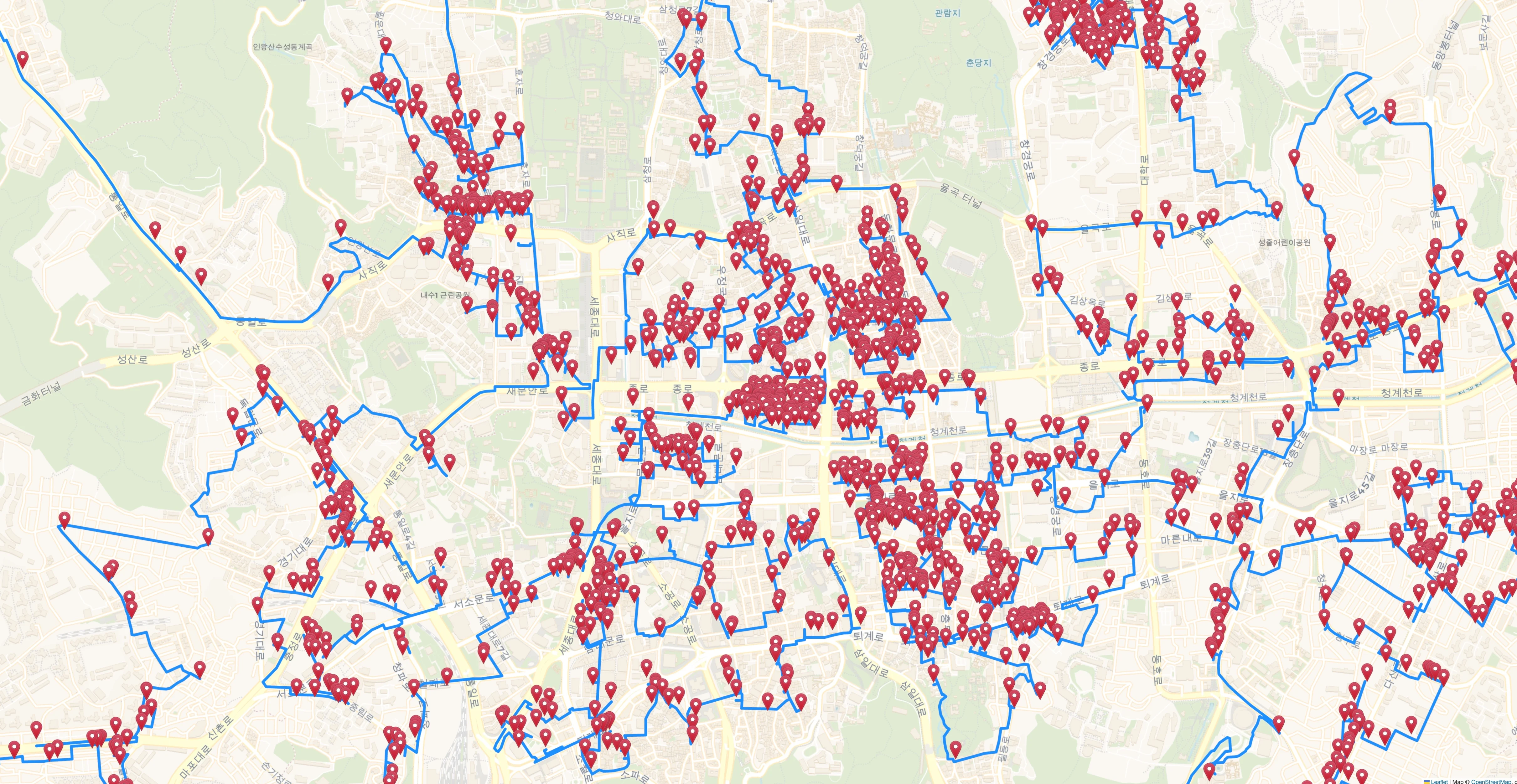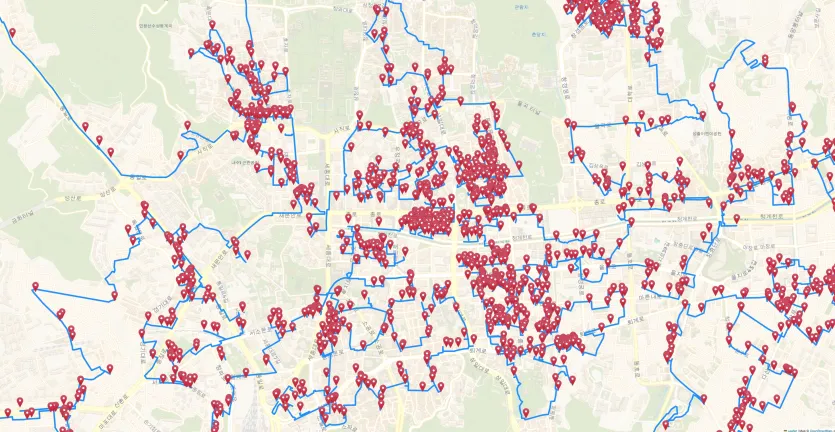 한국 81,998개 술집을 돌아보는 최단 도보 경로