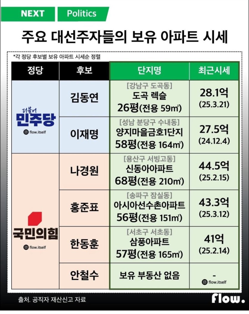 주요 대선주자 보유 아파트