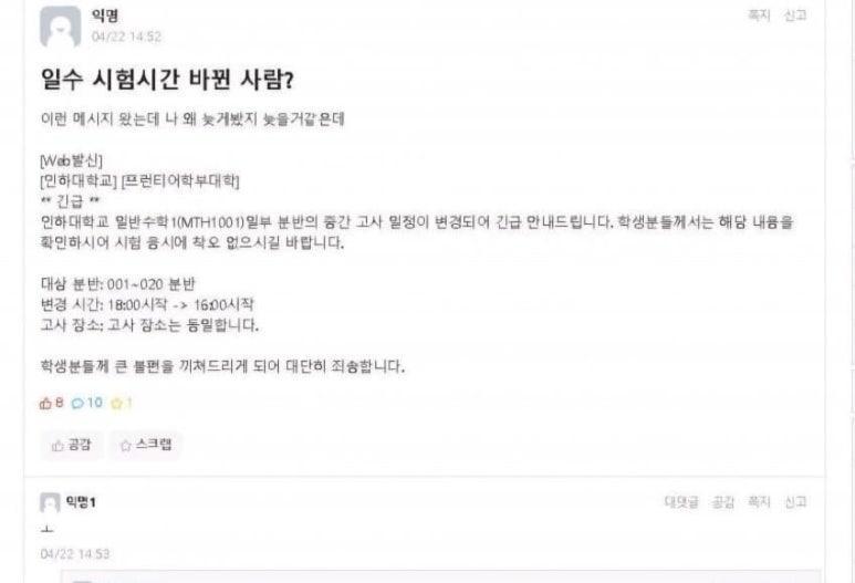 시험일정 장난문자 했다가 전과목 F 학점