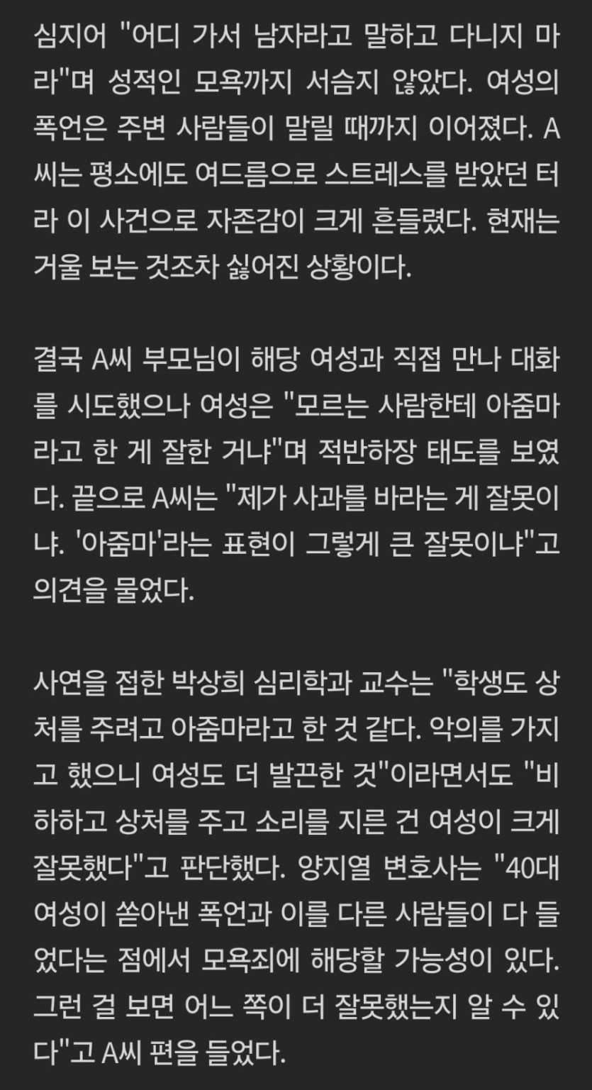 '아줌마' 소리에 발끈한 40대 여성 고교생에 막말