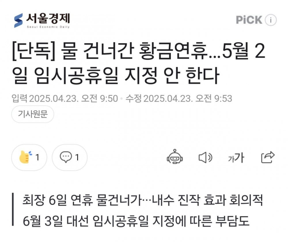 '황금 연휴' 5월 2일 임시공휴일 결과 떴다