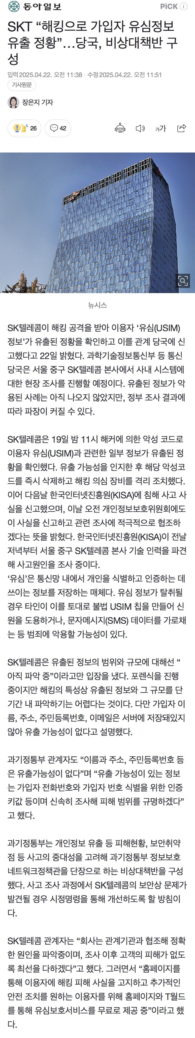 SKT “해킹으로 가입자 유심정보 유출 정황” rh1 0 119 0 2025.04.23 12:15 https://n.news.naver.com/article/020/0003630103?sid=101 T월드 들어가서 부가서비스 무료: 유심보호서비스 신청 ㄱㄱ SKT “해킹으로 가입자 유심정보 유출 정황” 0