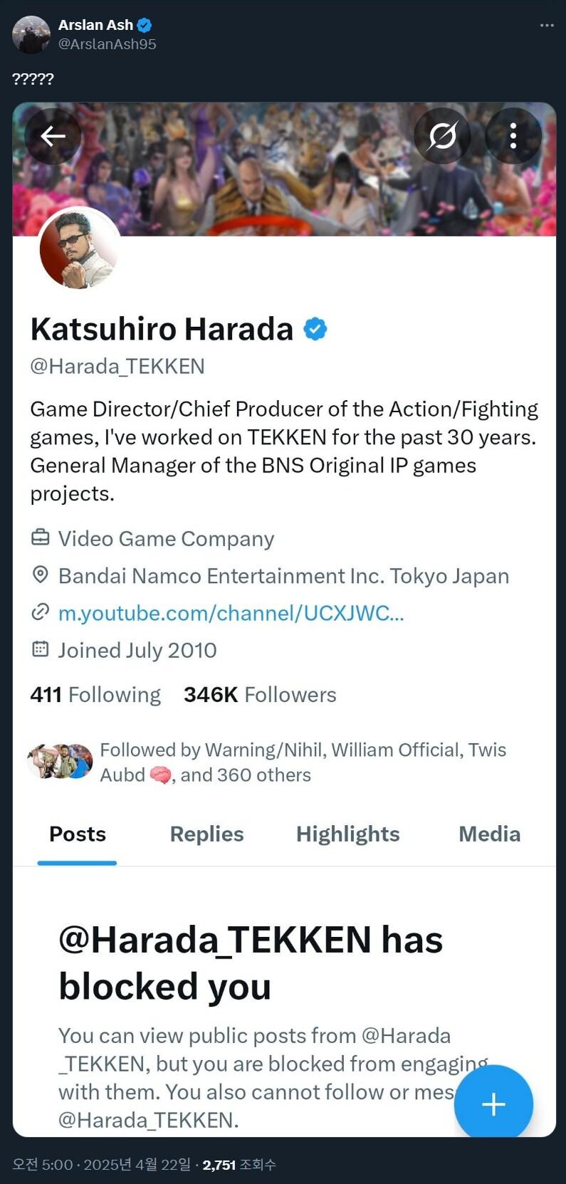 하라다한테 차단당함