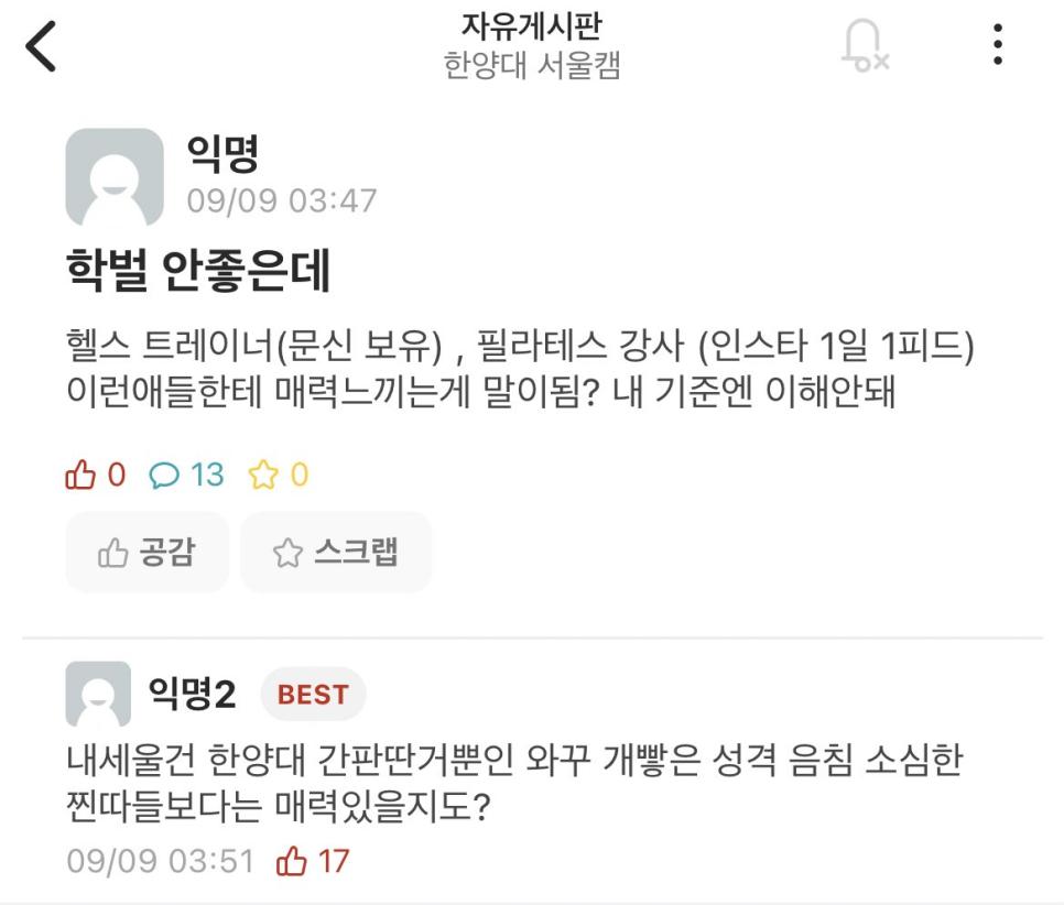 학벌 vs 필라테스 강사 헬스트레이너