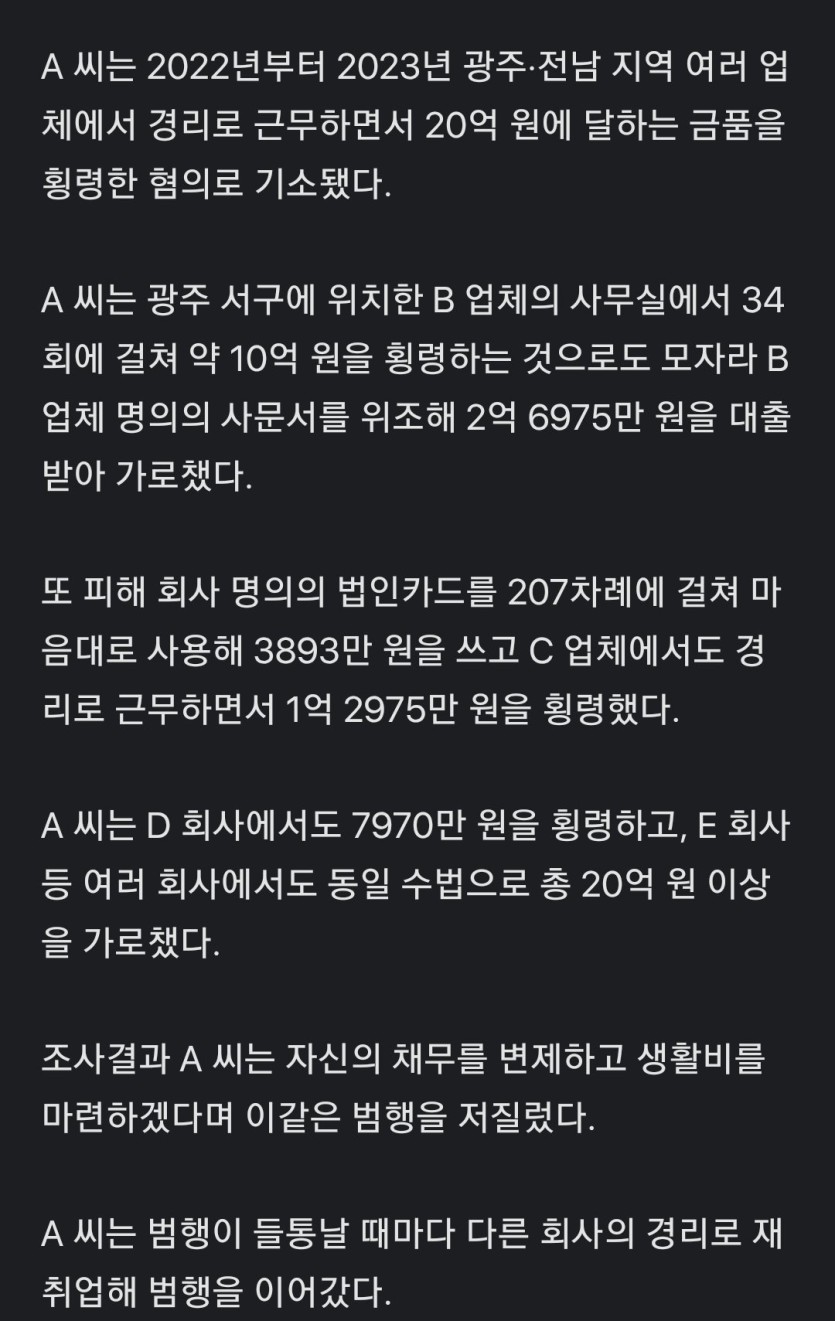 들통나면 다른 회사 취업…20억 꿀꺽 '횡령 전문' 30대 女경리