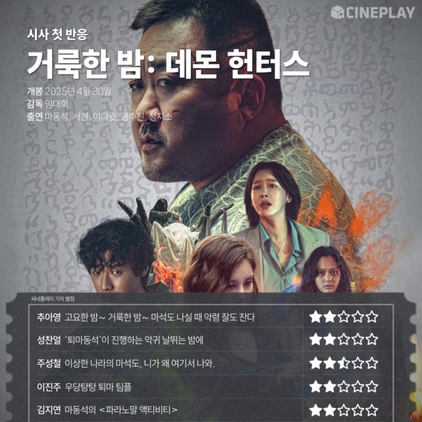 마동석 <거룩한 밤: 데몬 헌터스> 시사회 첫반응 기자들 평점