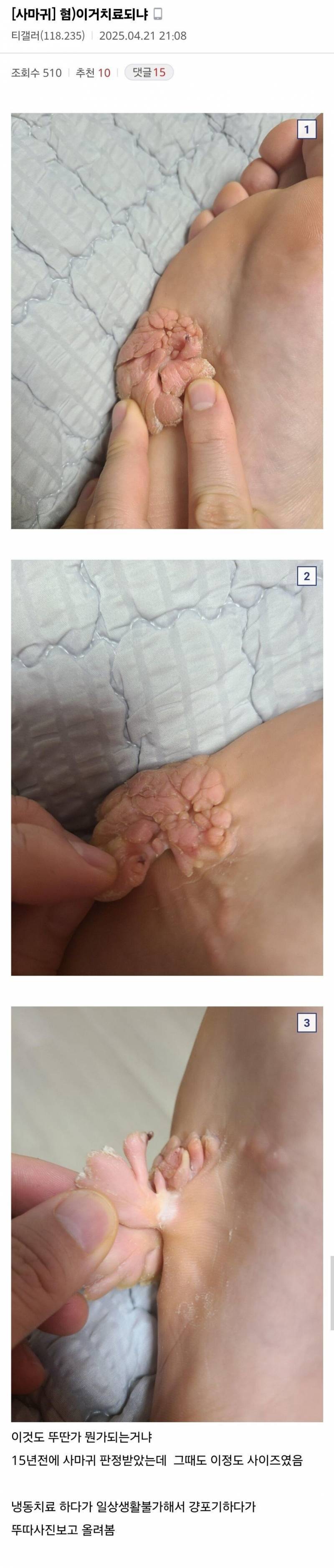 혐짤주의) 오늘자 티눈갤에 올라온 역대급 사마귀 rh1 0 110 0 2025.04.22 14:15 대체 저지경이 될때까지 어떻게...ㄷㄷ 혐짤주의) 오늘자 티눈갤에 올라온 역대급 사마귀 0