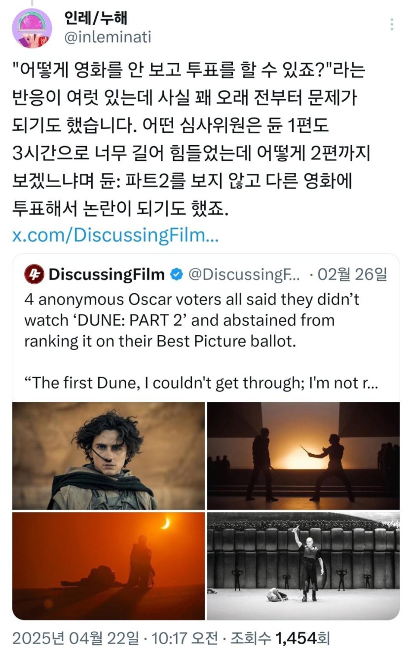 아카데미"이제부터는 영화를 다보고 평론해야한다"