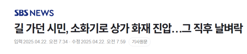 길 가던 시민, 소화기로 상가 화재 진압…그 직후 날벼락