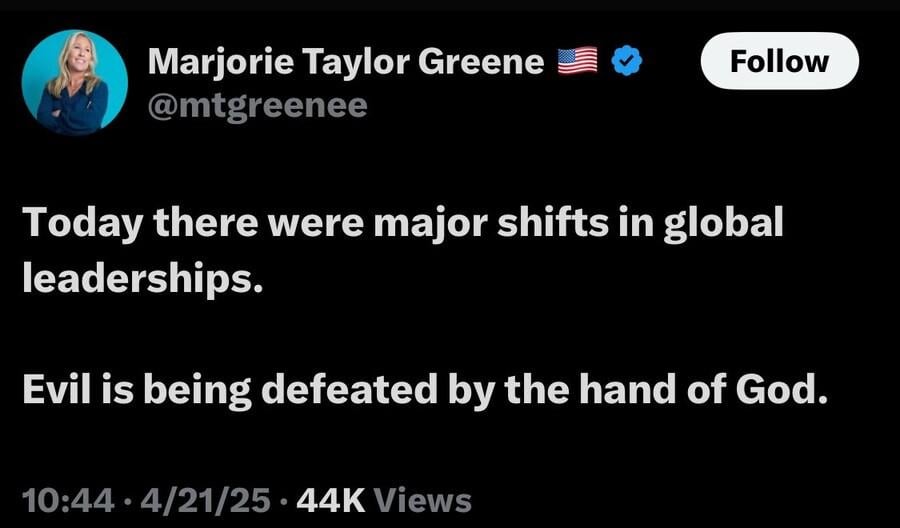공화당 하원 의원 : 악마(교황)가 신의 손에 패배했다