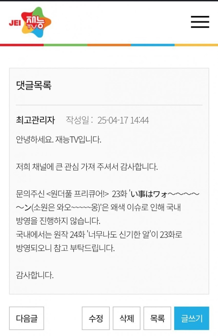 유카타 입었다고 에피소드 하나 통째로 삭제