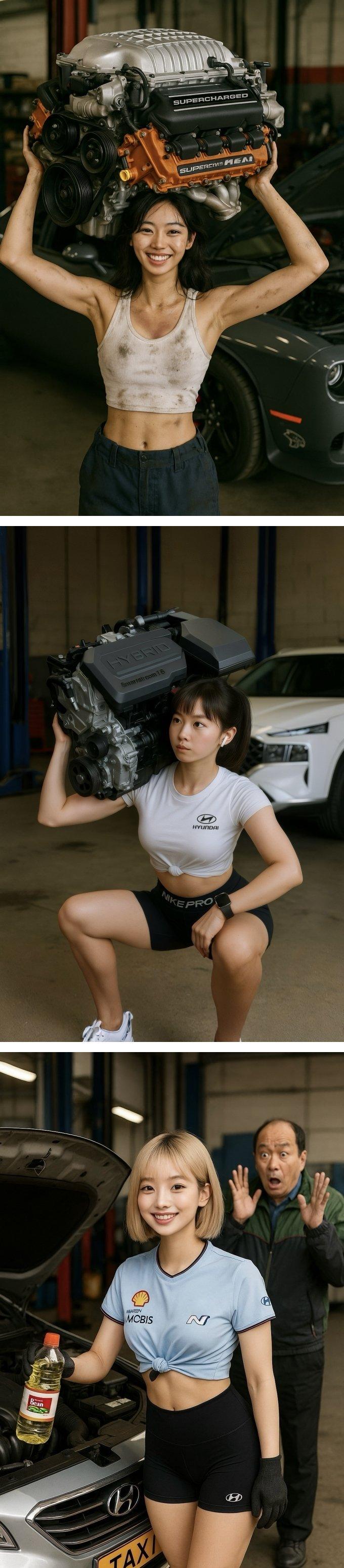 Ai가 그린 한국 여성 자동차 정비사들 ㄷㄷㄷ.jpg rh1 0 174 0 2025.04.22 07:45 참고로 헬켓 헤미 엔진 무게는 397kg,스마스트스트림 1.6 터보 하브 엔진 무게는 약 130kg ㄷㄷㄷ 0