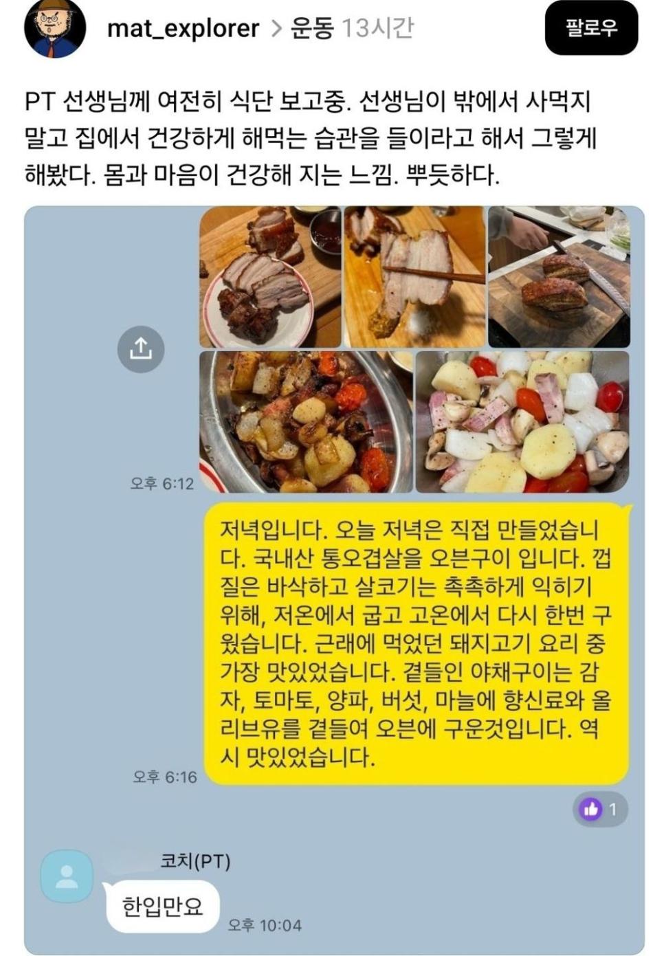 운동하면서 건강한 집밥 먹는 사람