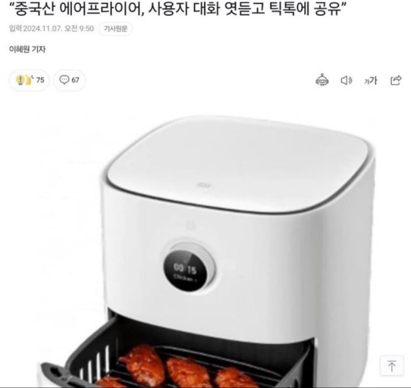 중국에서는 에어프라이어가 대화를 엿듣습니다