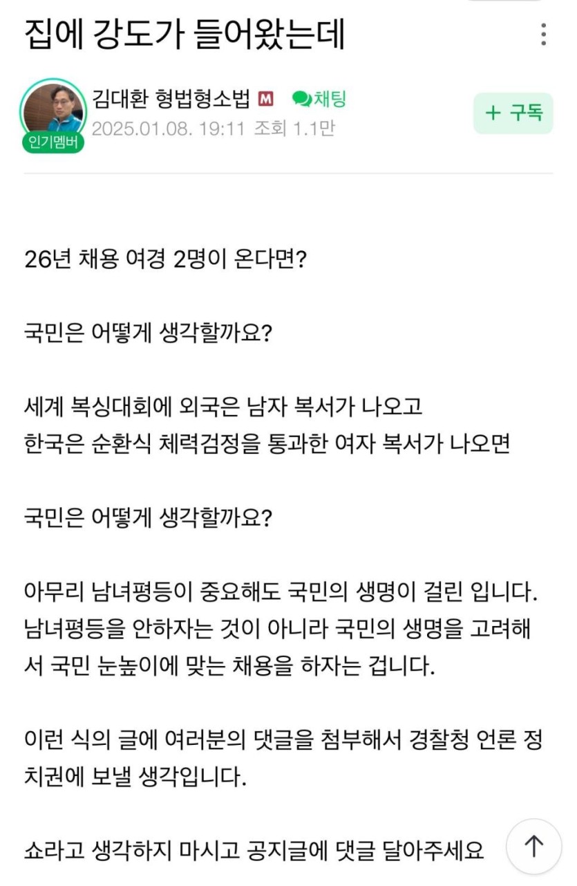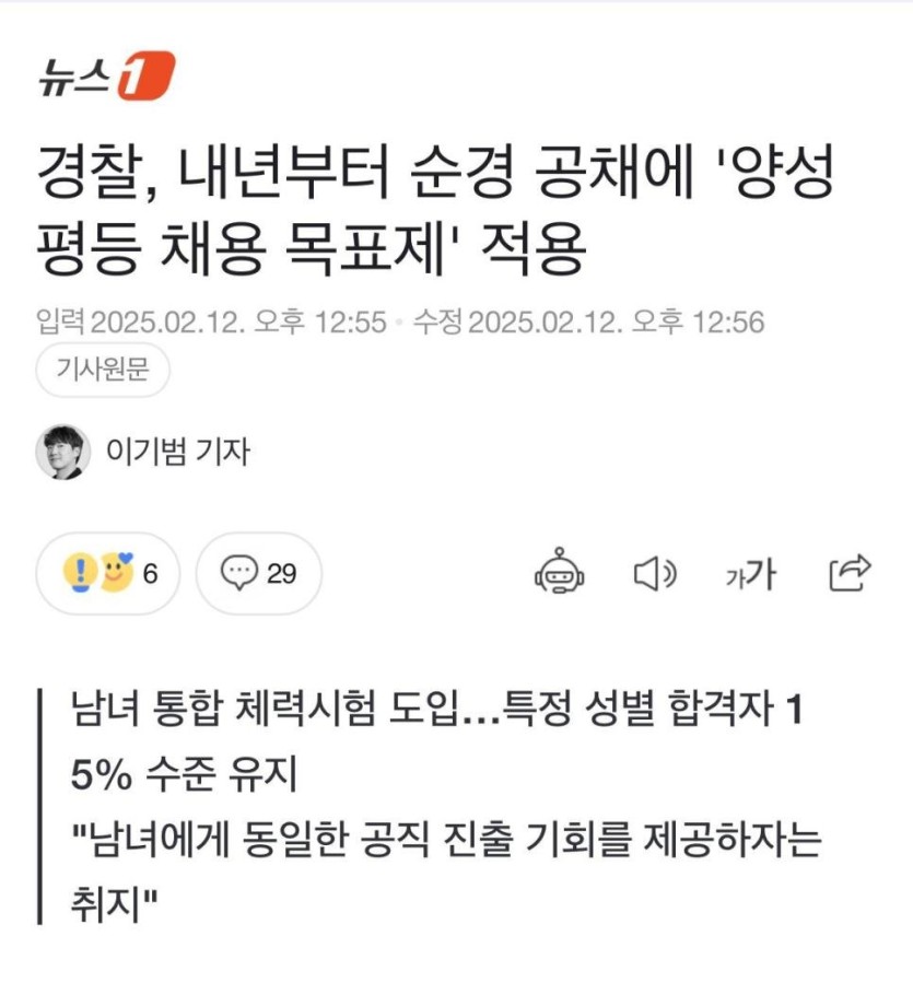 26년부터 경찰 남녀 통합채용 논란ㄷㄷ