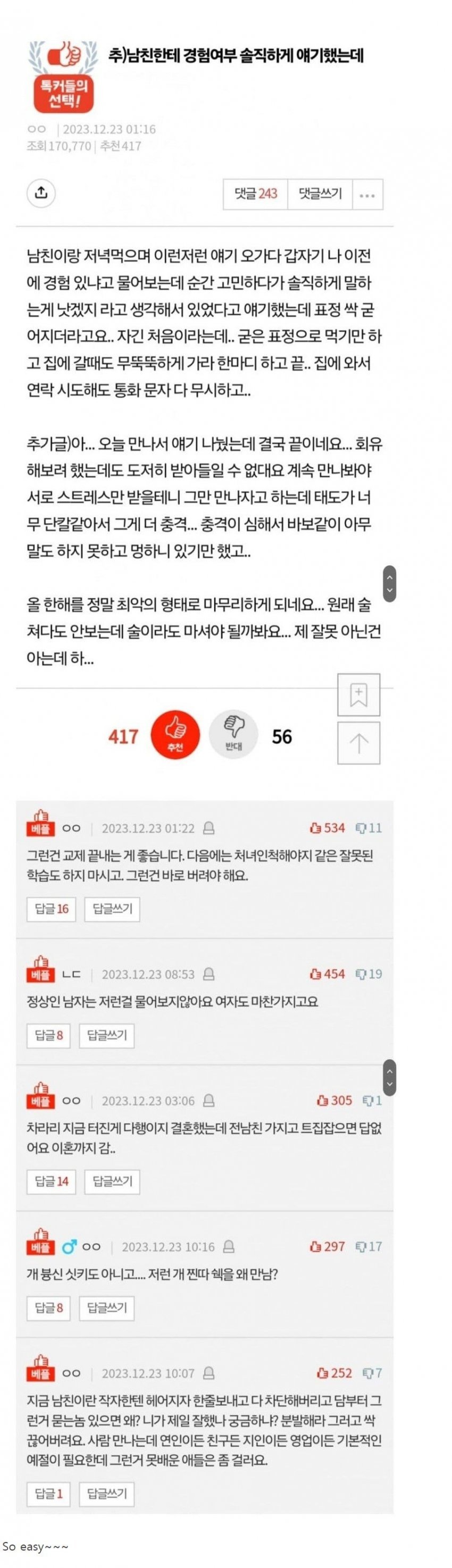 이별통보의 이유가 이해가 안된다는 여대생 누나