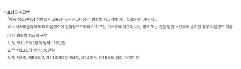 어... 지금 아청법 신고 포상제 실시 된다는데