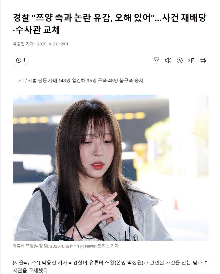 경찰 "쯔양 측과 논란 유감, 오해 있어"…사건 재배당·수사관 교체 rh1 0 108 0 2025.04.21 18:00 https://v.daum.net/v/20250421120125854 0