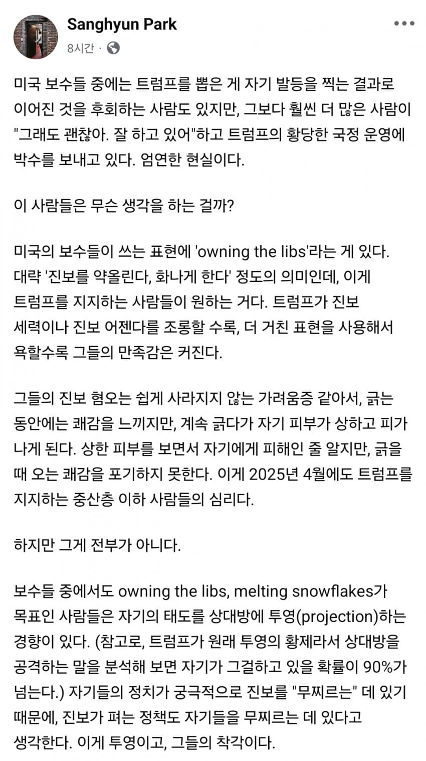 트럼프 지지율이 높은 현상 분석 rh1 0 114 0 2025.04.21 16:15 반pc 해주면 본인 삶이 망가져도 괜찮은 MAGA들이 많아서 ㅋㅋㅋㅋㅋㅋㅋㅋㅋㅋ 트럼프 지지율이 높은 현상 분석 0