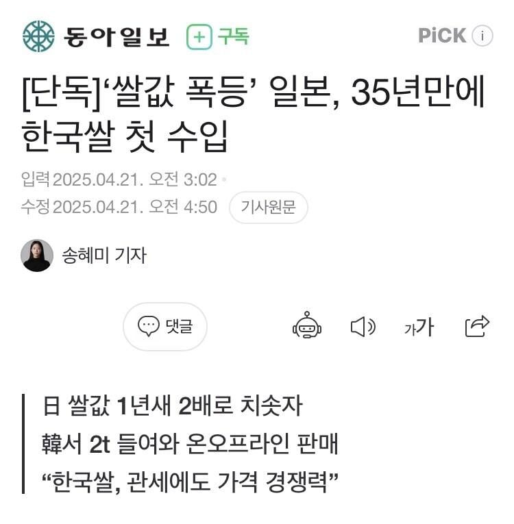 일본 공식 한국쌀수입 근황 ㄷㄷ ????