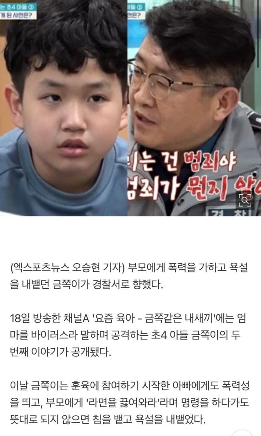 금쪽이, 母 폭행·영상 비공개…경찰서 行 "소년원 가능"