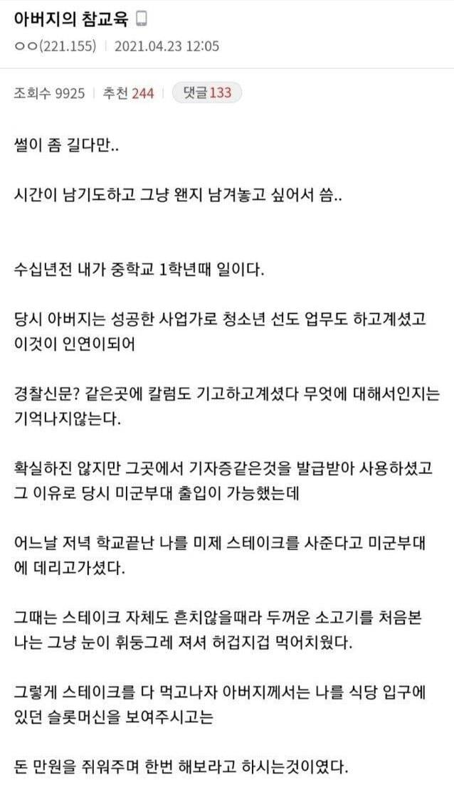 도박하지 말라던 아버지가 주신 교훈