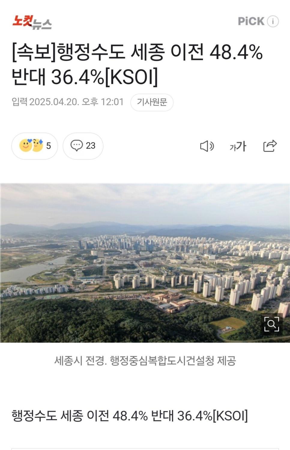 [속보] 행정수도 세종 이전 찬성 48% vs 반대 36% rh1 0 215 0 2025.04.20 15:30 하여간 부동산이 우리나라를 망침...우리나라가 망해도,, 내 집값 떨어지는건 못참는 사람들... 0