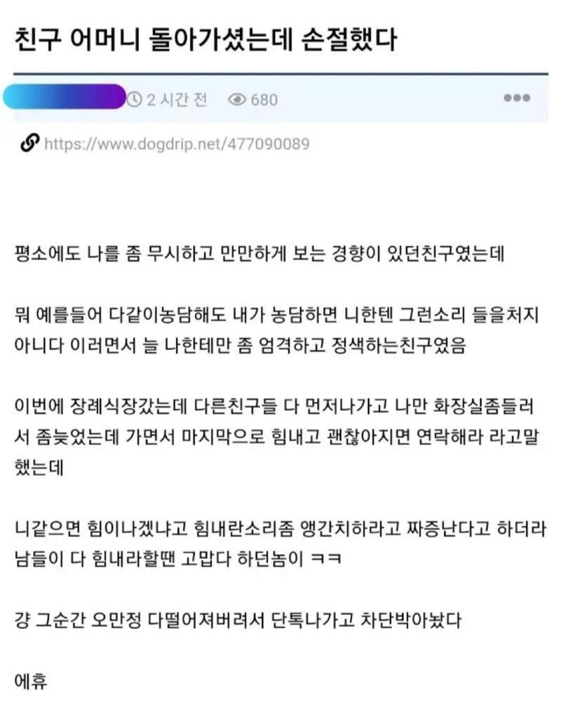 친구 어머니 돌아가셨는데 친구 손절했다