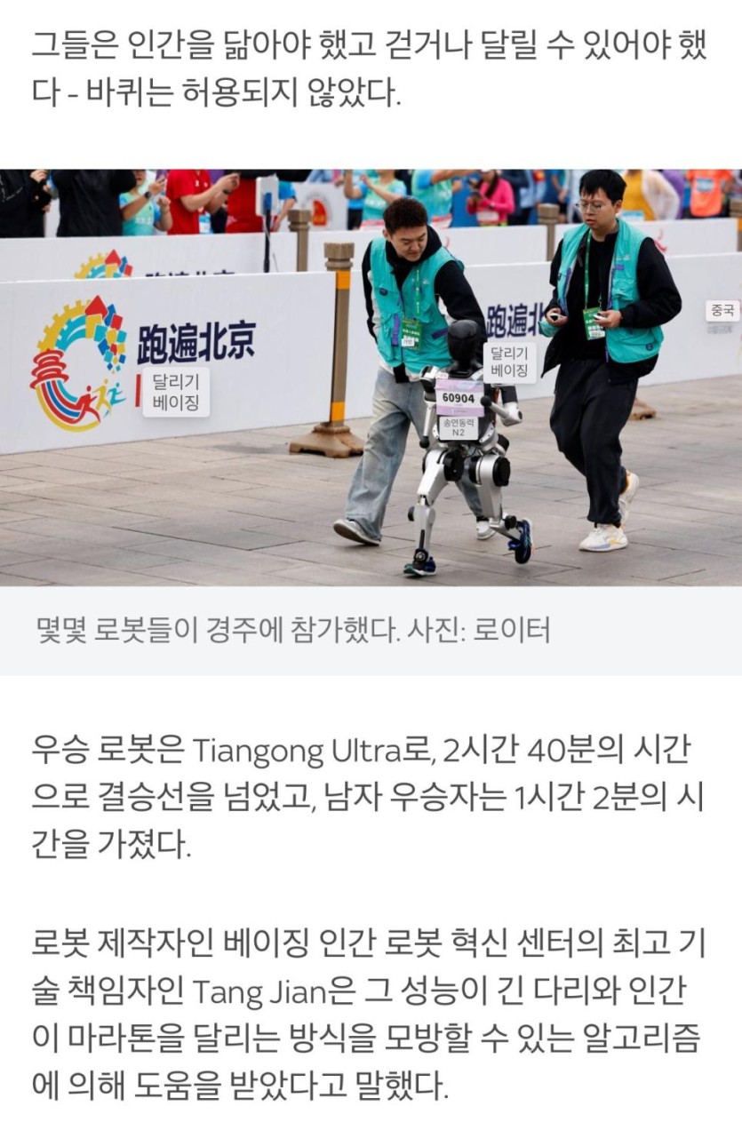 현재 중국 로봇 마라톤 대회 근황 ㅎㄷㄷㄷㄷ