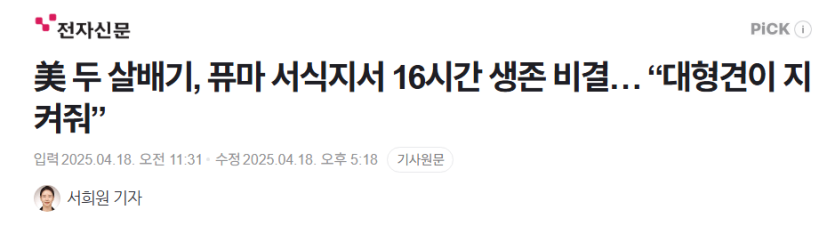 美 두 살배기, 퓨마 서식지서 16시간 생존 비결… “대형견이 지켜줘”