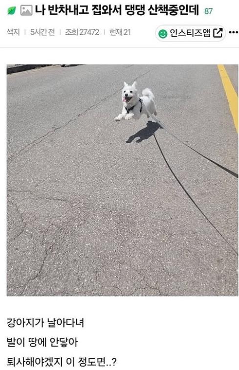 나 반차 내고 집 와서 강아지지 산책 중인데..jpg