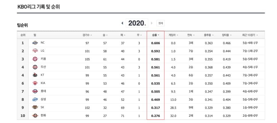 올해 프로야구는 선두와 최하위간에 차이가 적네요.
