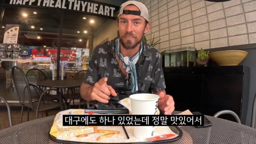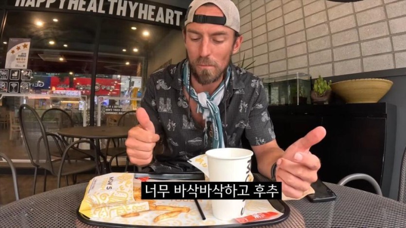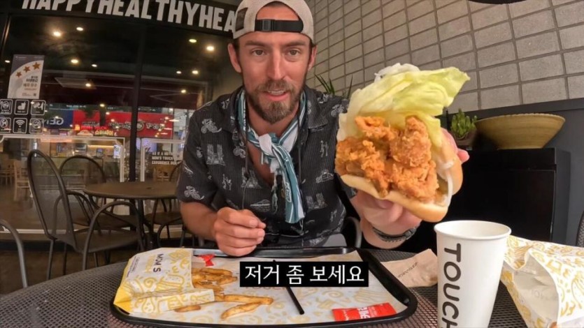 한국의 치킨 샌드위치를 극찬하는 미국인 유튜버.jpg