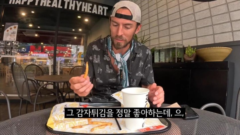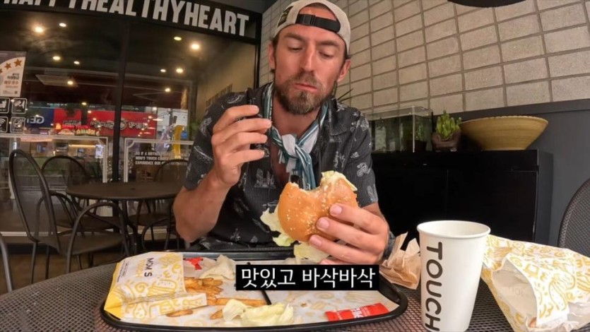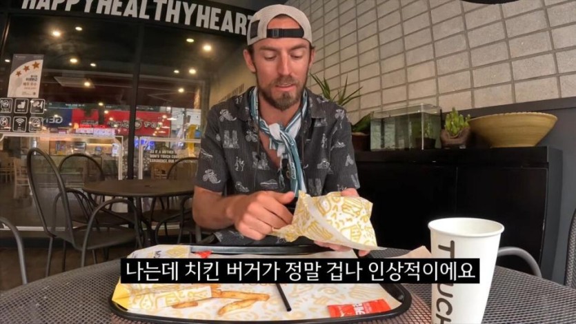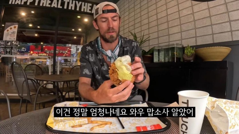 한국의 치킨 샌드위치를 극찬하는 미국인 유튜버.jpg
