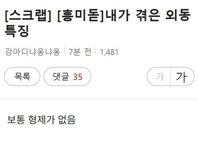 현재 논란 중인 외동 특징