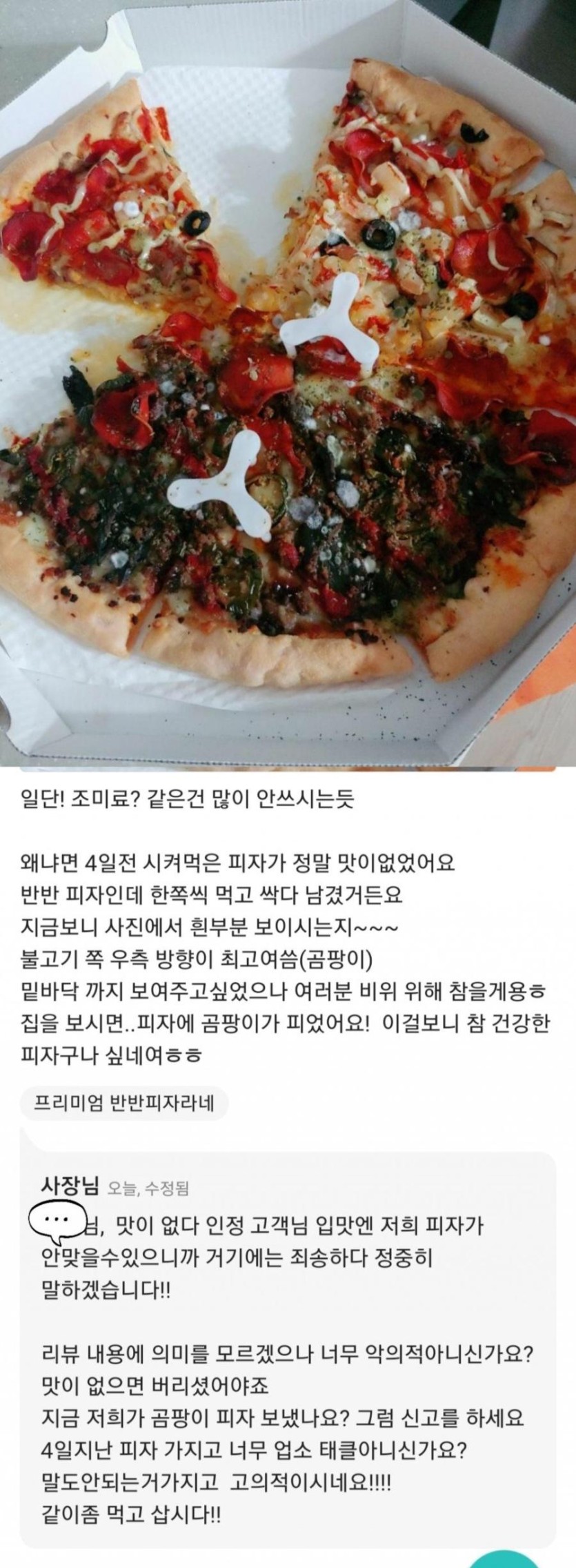 약혐) 피자에 곰팡이가 피었다는 리뷰