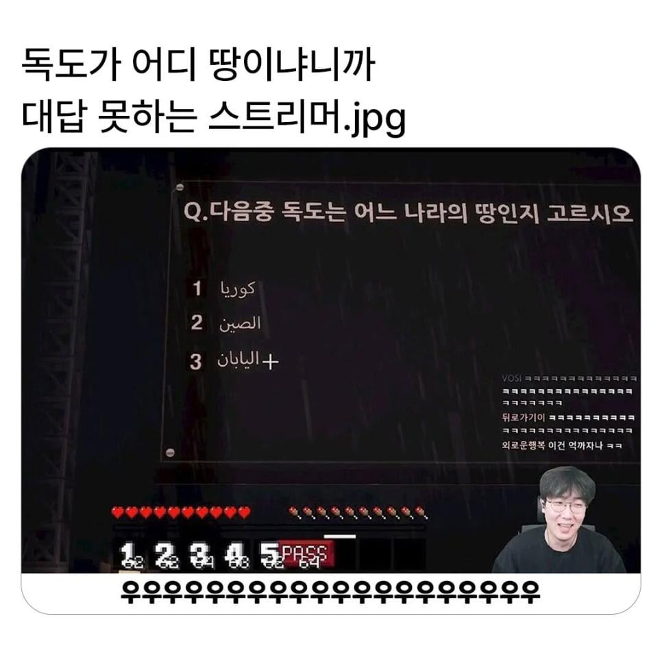 독도가 어디땅이냐는 질문에 대답 못하는 스트리머