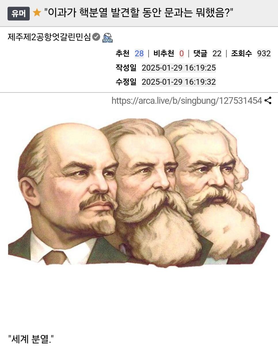 이과가 핵분열 발견할 동안 문과는 뭐했음?