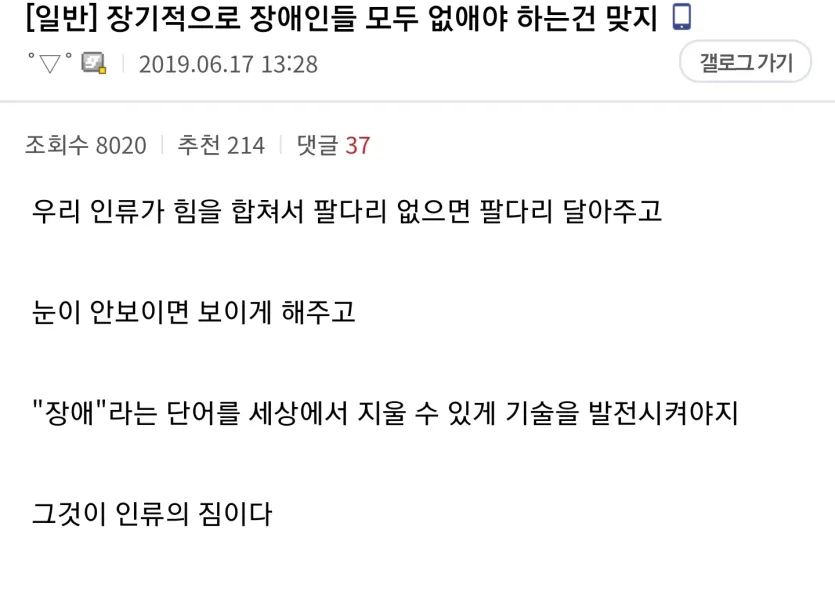 솔직히 장애인은 사회에서 모두 제거해야 함
