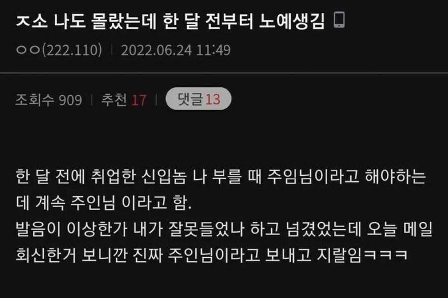나도 몰랐는데 한 달 전부터 노예 생김