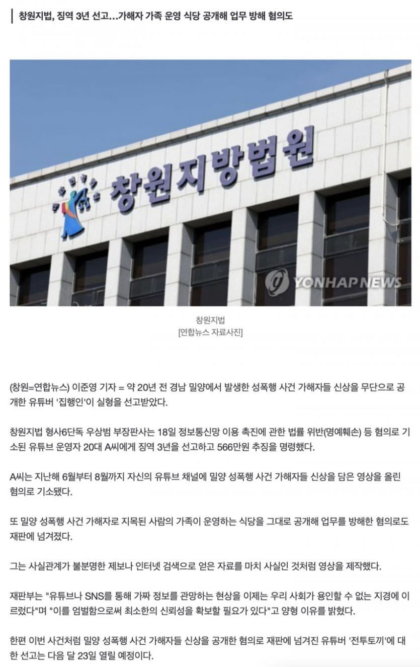 밀양 성폭행 가해자들 신상 공개한 유튜버 '집행인' 실형 rh1 0 196 0 2025.04.19 09:00 https://n.news.naver.com/mnews/article/001/0015338780?rc=N&ntype=RANKING 0