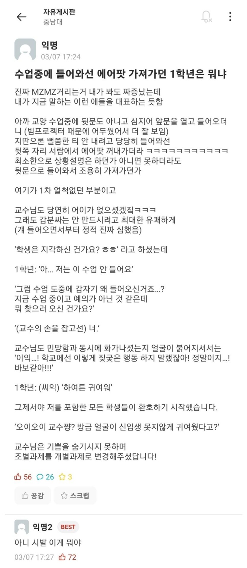 수업중에 에어팟 가져가는 개념없는 대학교 1학년