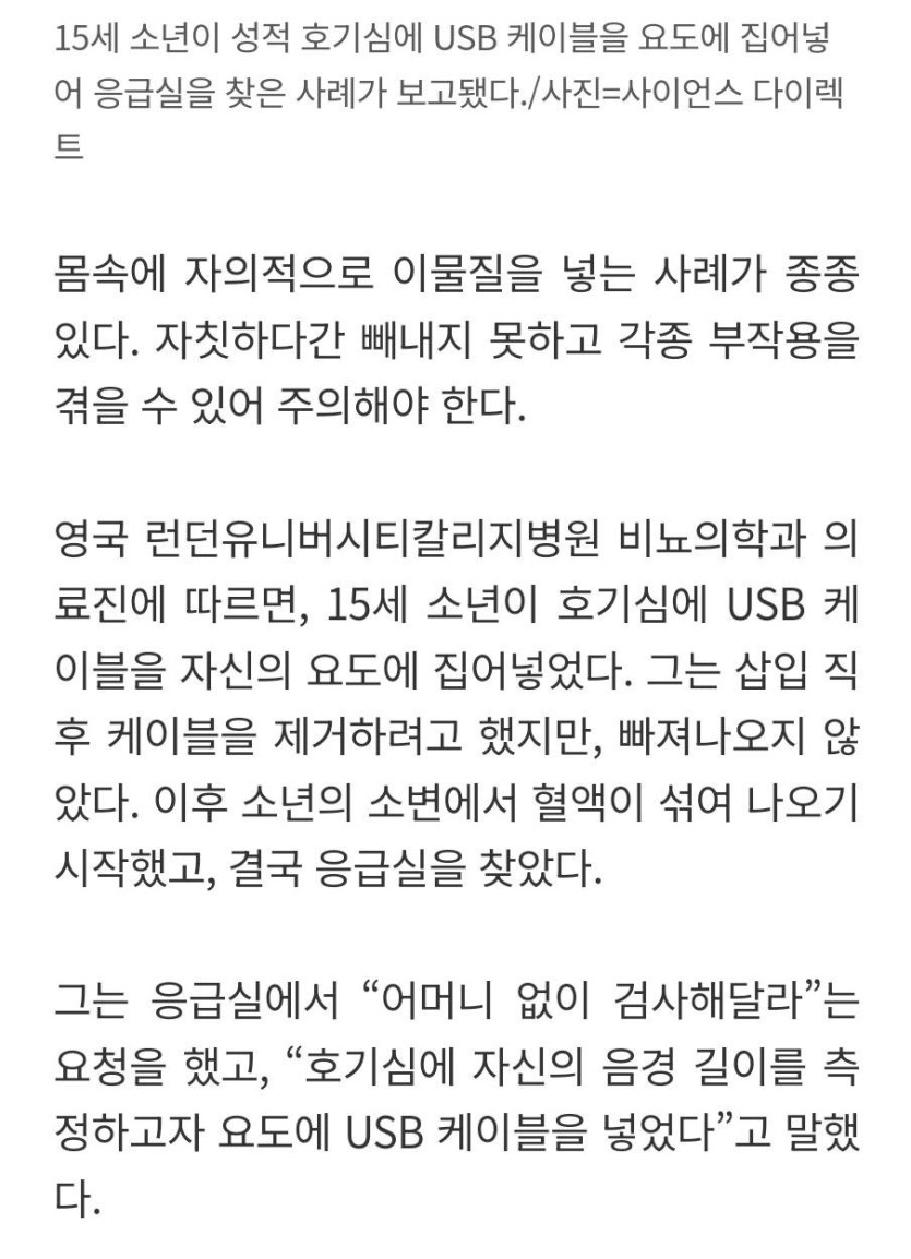 음경 길이 재려고 요도에'이것'집어넣은 15세 소년