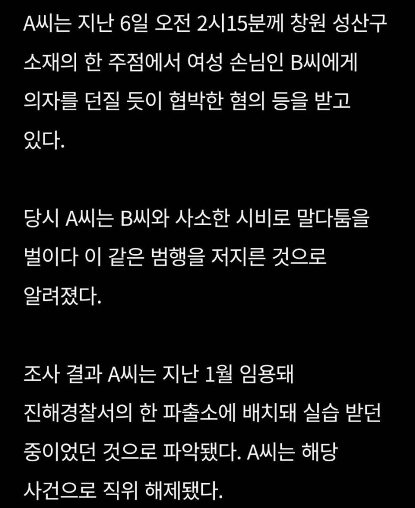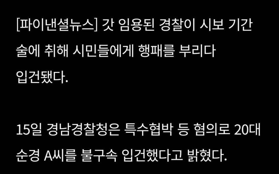 갓 임용된 20대 시보 경찰, 주점서 행패 부리다 입건 ㄷ rh1 0 107 0 2025.04.19 04:45 https://www.fnnews.com/news/202504160627446350 0