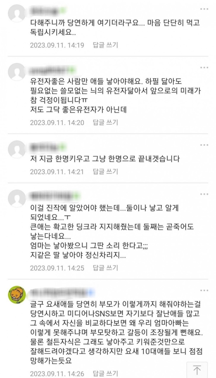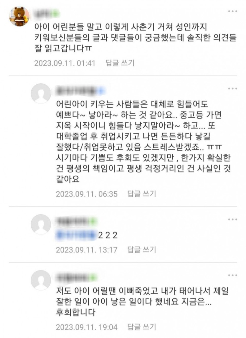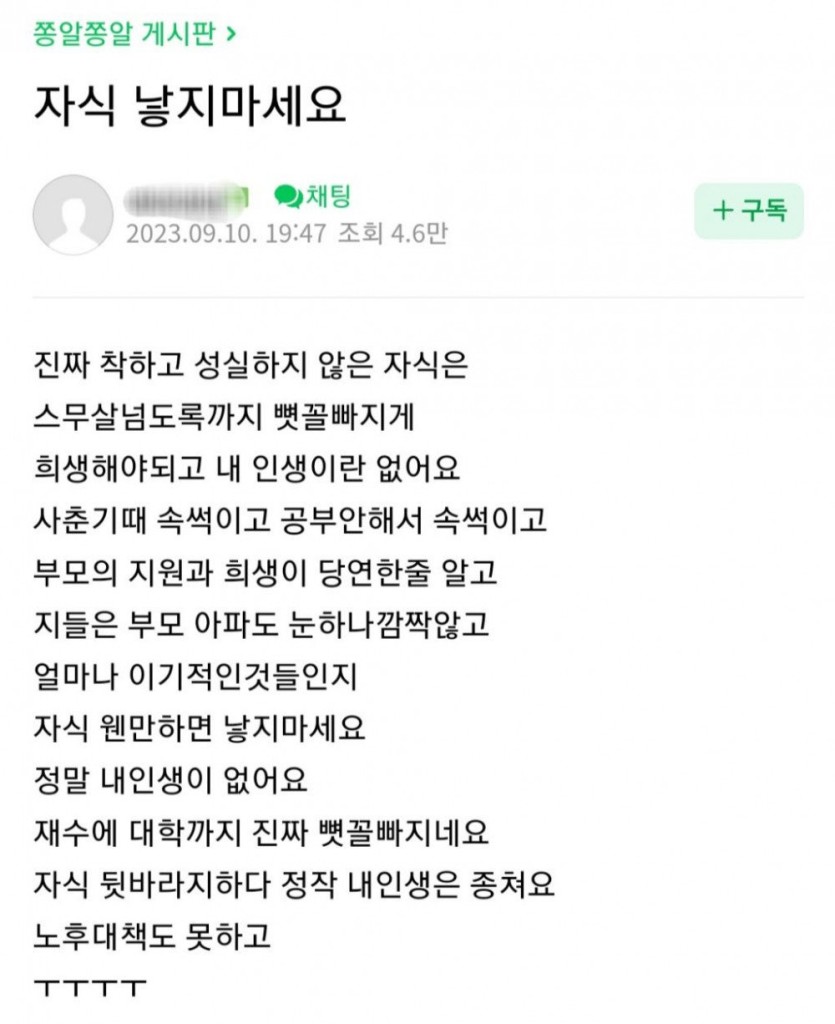 자식 낳지마세요 내 인생이 없어요