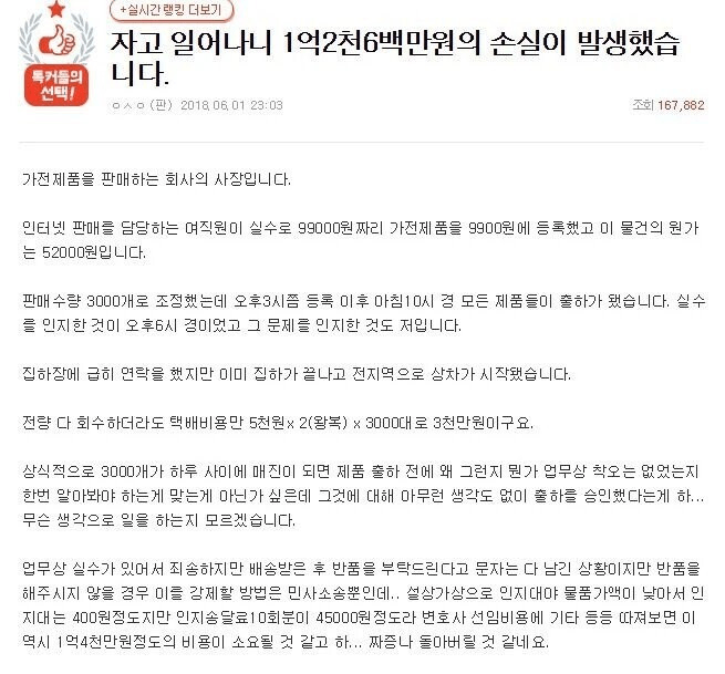 직원 때문에 1억 손해 났다는 사장